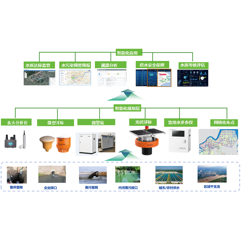 系統(tǒng)運(yùn)用現(xiàn)代傳感器、自動(dòng)測(cè)量、智能控制、遠(yuǎn)程監(jiān)控等技術(shù), 結(jié)合相關(guān)專用分析軟件,對(duì)地表水水質(zhì)( PH、濁度、電導(dǎo)率、溶解氧、溫度、高錳酸鹽指數(shù)、氨氮、總磷、總氮等指標(biāo)) 進(jìn)行實(shí)時(shí)在線監(jiān)測(cè)、記錄水質(zhì)變化情況,
